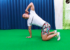 頭と体を進行方向へ跳ね返し、同時に足が壁に着地します。